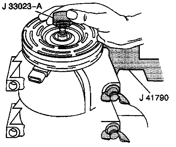 10. Remove the J 33013-B from the clutch rotor and bearing assembly