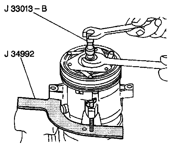 10. Hold the center screw of the J 33013-B with a wrench.