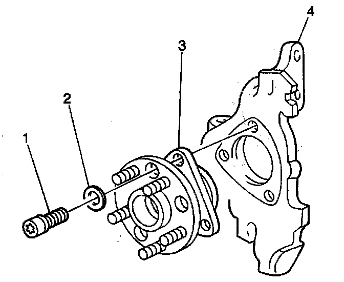 5. Remove the bolts (1) and washers (2) from the hub and bearing assembly (3).