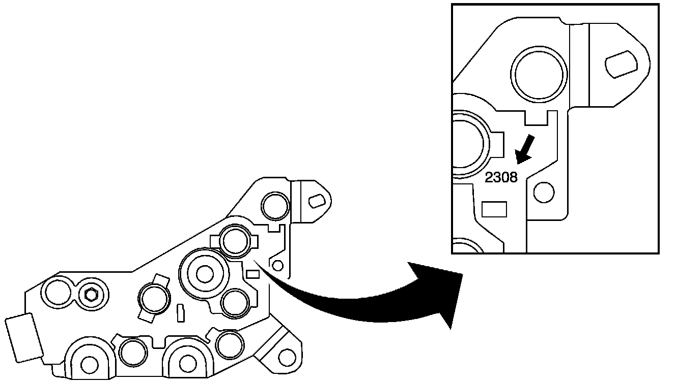 Before installing the new TFP switch, inspect the date code stamped in the switch. The date code MUST BE 2308 or higher. Refer to the illustration above.