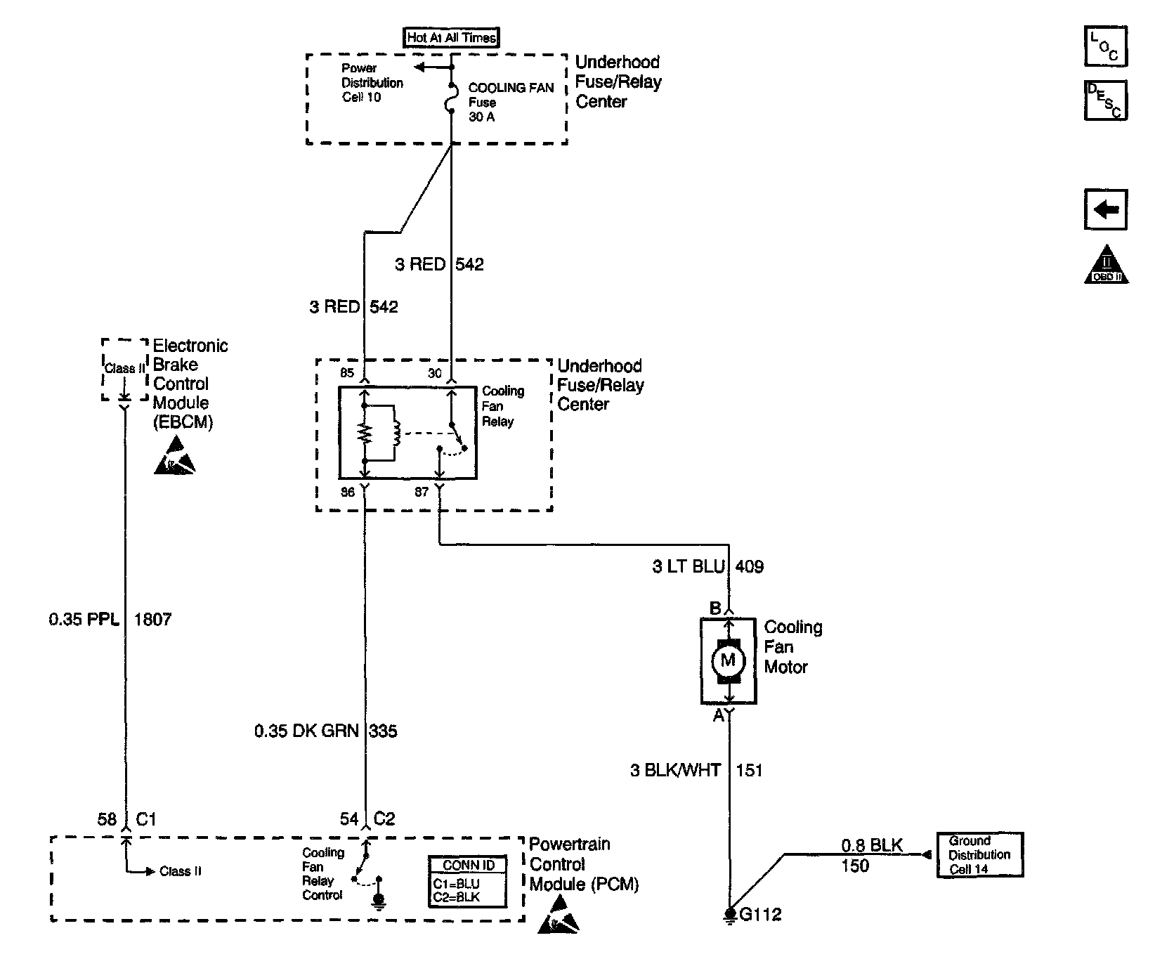 Engine Control Schematics: Power, Gound, EBCM, And Cooling Fan Motor: