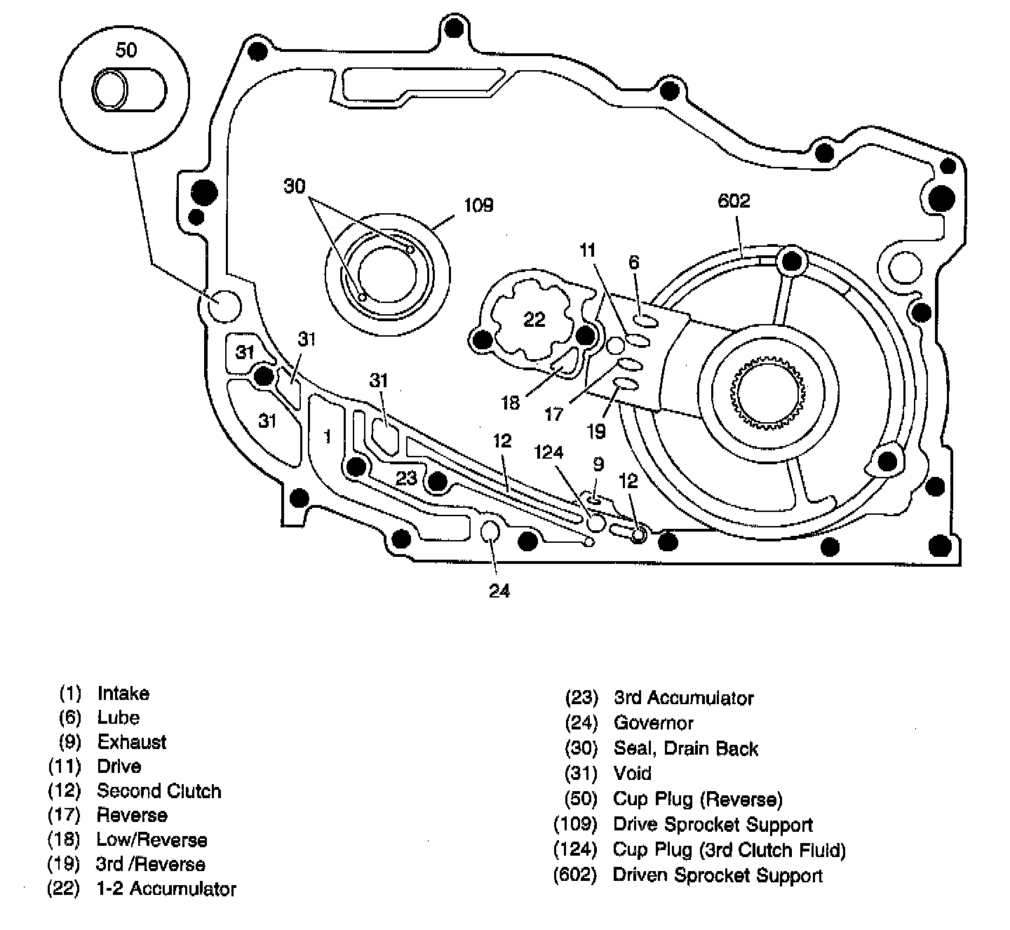 Case Cover Fluid Passages (Control Valve Body Side)