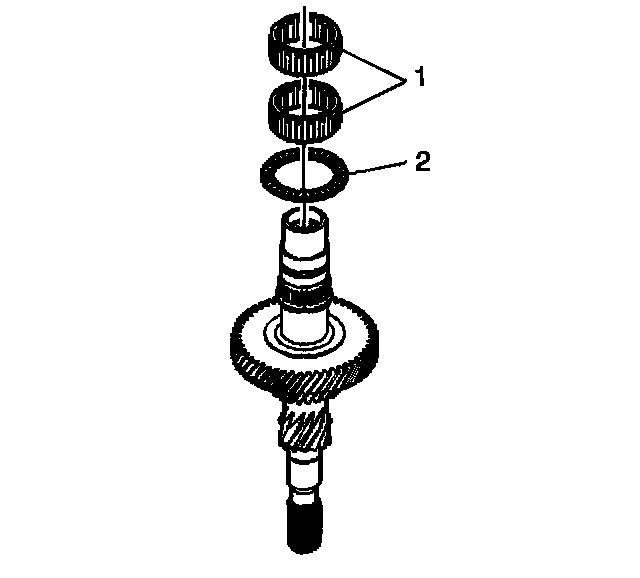 3. Install the two caged needle bearings (1).