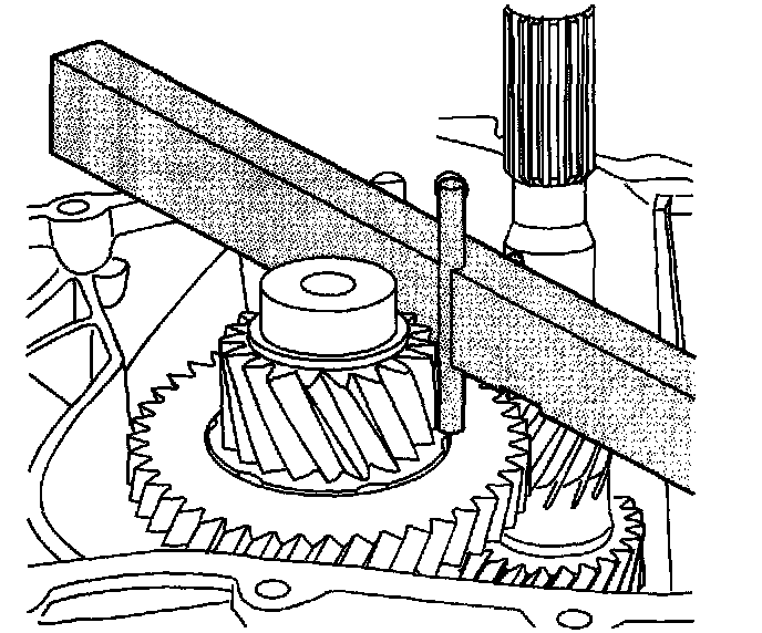25. The distance from the top surface of the J 44388-3 to the land of the right differential side bearing shim is measured and recorded (measurement F).