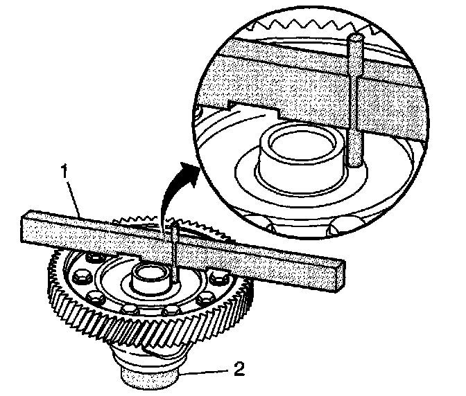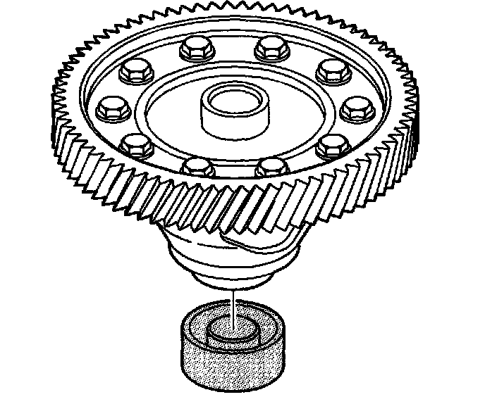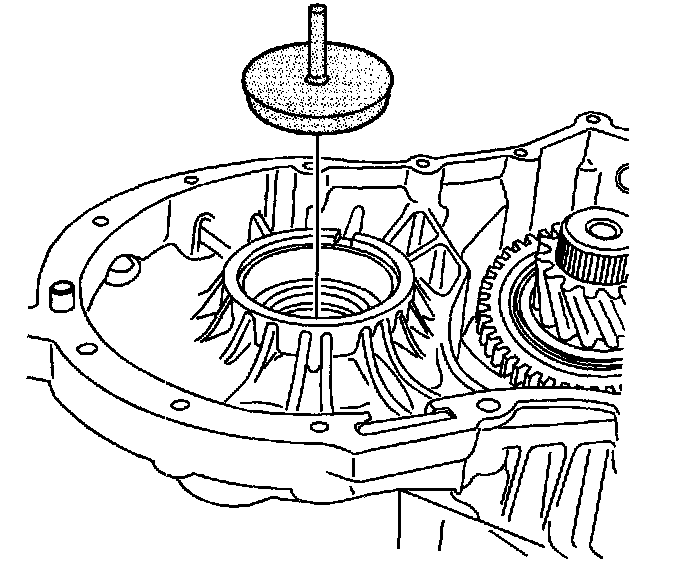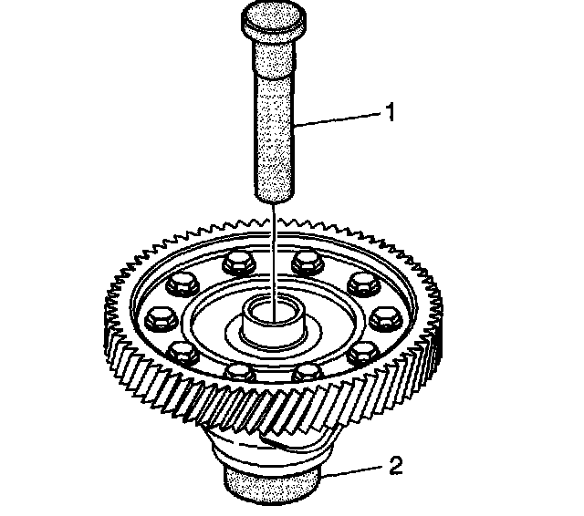 10. Install the J 44388-2 into the left differential side bearing race. Ensure that the J 44388-2 is fully seated into the left differential side bearing race.