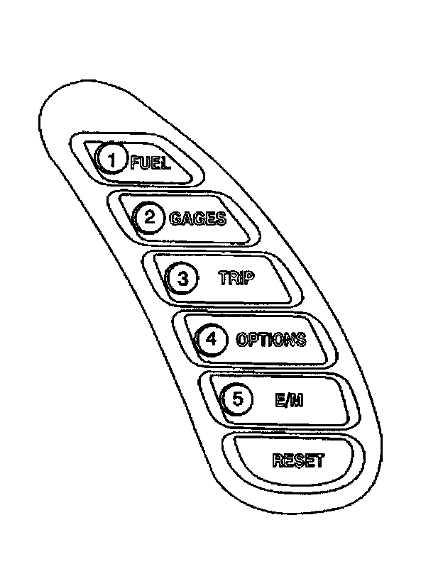The manual display feature allows you to manually select each module DTC display function. The manual mode will automatically be entered after the automatic DTC display sequence is complete, or can be entered at any time during the automatic mode by pressing any button on the DISC except the E/M 5 (E/M 5 button is used to exit the DIAGNOSTIC mode at any time). When the manual mode is selected, the IPC will display the MANUAL DIAGNOSTICS mode message for 2 seconds, or until any button on the DISC except the E/M 5 is pressed. After the MANUAL DIAGNOSTICS mode message is displayed, the IPC will display the first system abbreviation and quantity of codes stored for that system, then the IPC will wait for further instructions. The buttons on the DISC provide the following functions when operating the on-board diagnostic feature in the manual mode:DIC Button Functions: