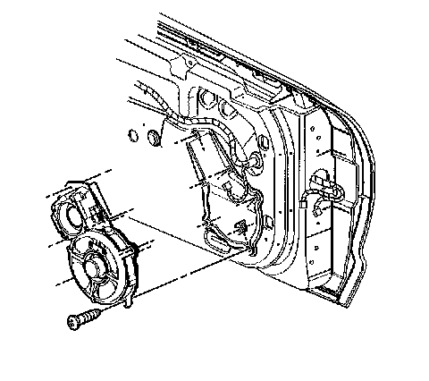 6. Install the uppermost screw mounting the radio speaker assembly to the door.