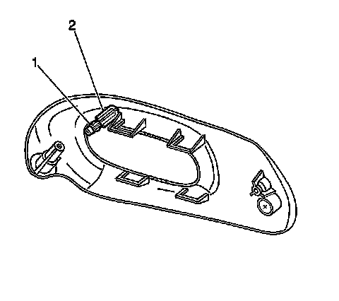 2. Install a new barrel clip (1) to the trim panel upper barrel post (2).