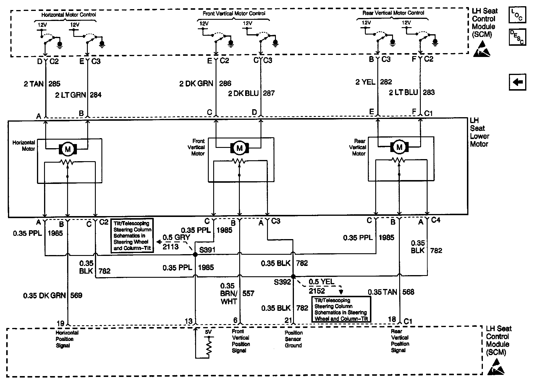 Memory Seats Schematics: LH Seat Control Module W/Telescoping Steering Column: