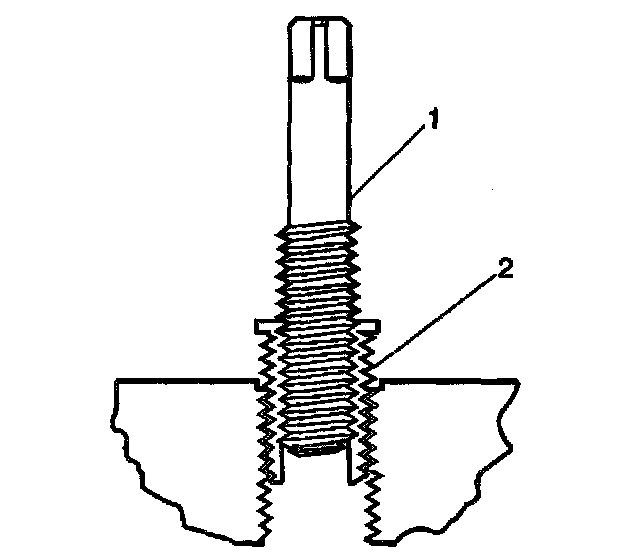 11. Apply threadlock Loctite 277, J 42385-109 (1), or equivalent to the insert OD threads (2).