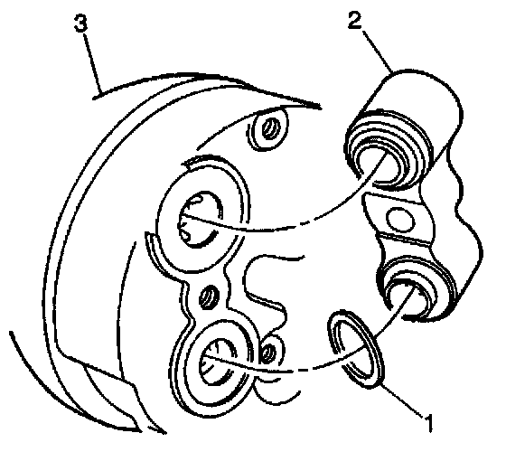 IMPORTANT: After tightening the compressor hose (3) to the compressor (2), there should be a slight sealing washer gap (1) of approximately 1.2 mm (3/64 in) between the compressor hose (3) and the compressor (2).