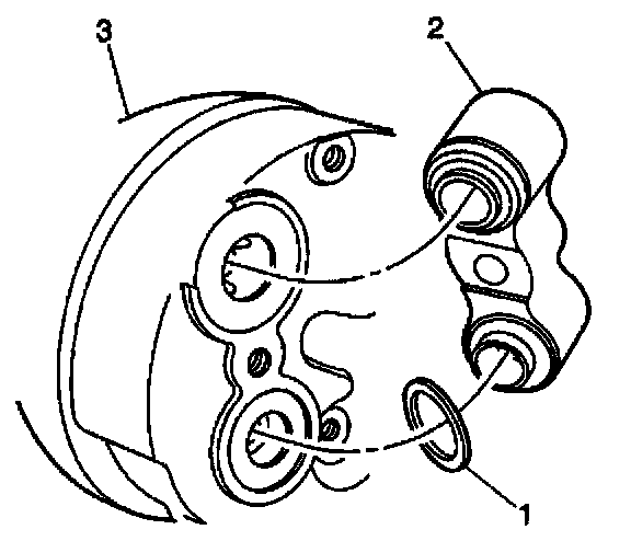 IMPORTANT: After tightening the compressor hose (3) to the compressor (2), there should be a slight sealing washer gap (1) of approximately 1.2 mm (3/64 in) between the compressor hose (3) and the compressor (2).