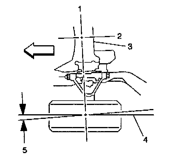Toe DescriptionThe toe angle is the measurement of how much the front or rear wheels are turned inward or outward (5) from a straight-ahead position (4), when the wheels are viewed from the front or rear of the vehicle. When the wheels are turned inward, the toe angle is positive. When the wheels are turned outward, the toe angle is negative. The purpose of toe is to ensure that the wheels roll parallel to the road.