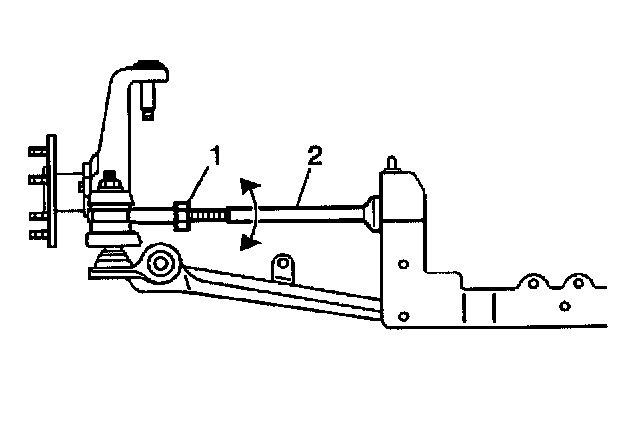 2. Rotate the inner tie rod (2) to the required toe specification setting. Refer to Wheel Alignment Specifications.