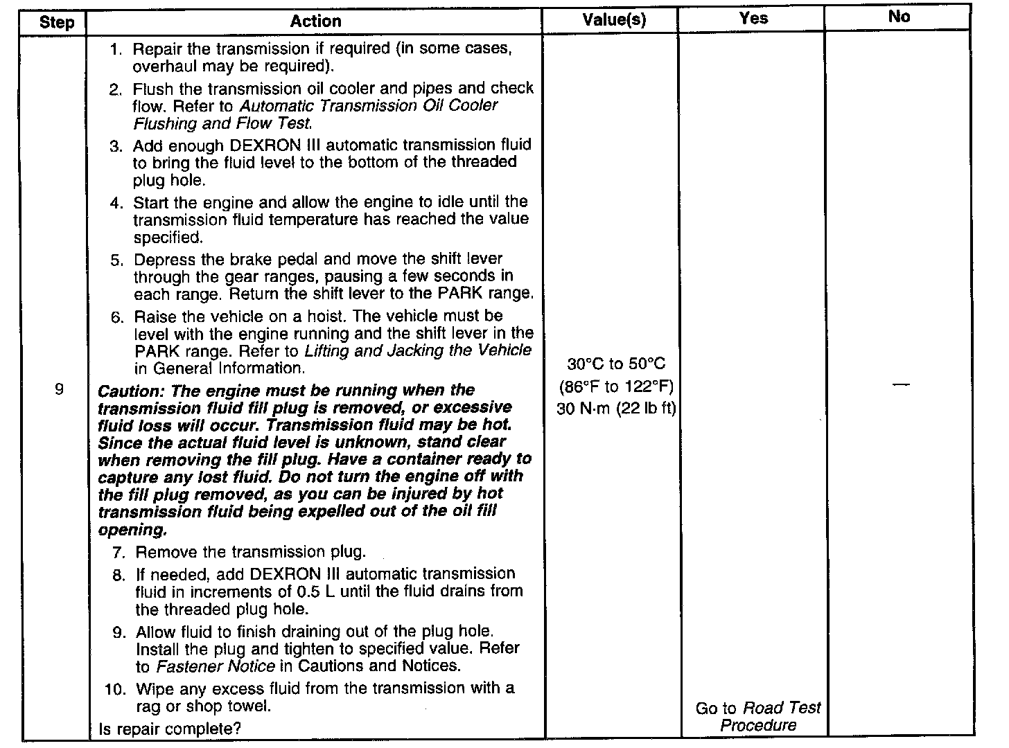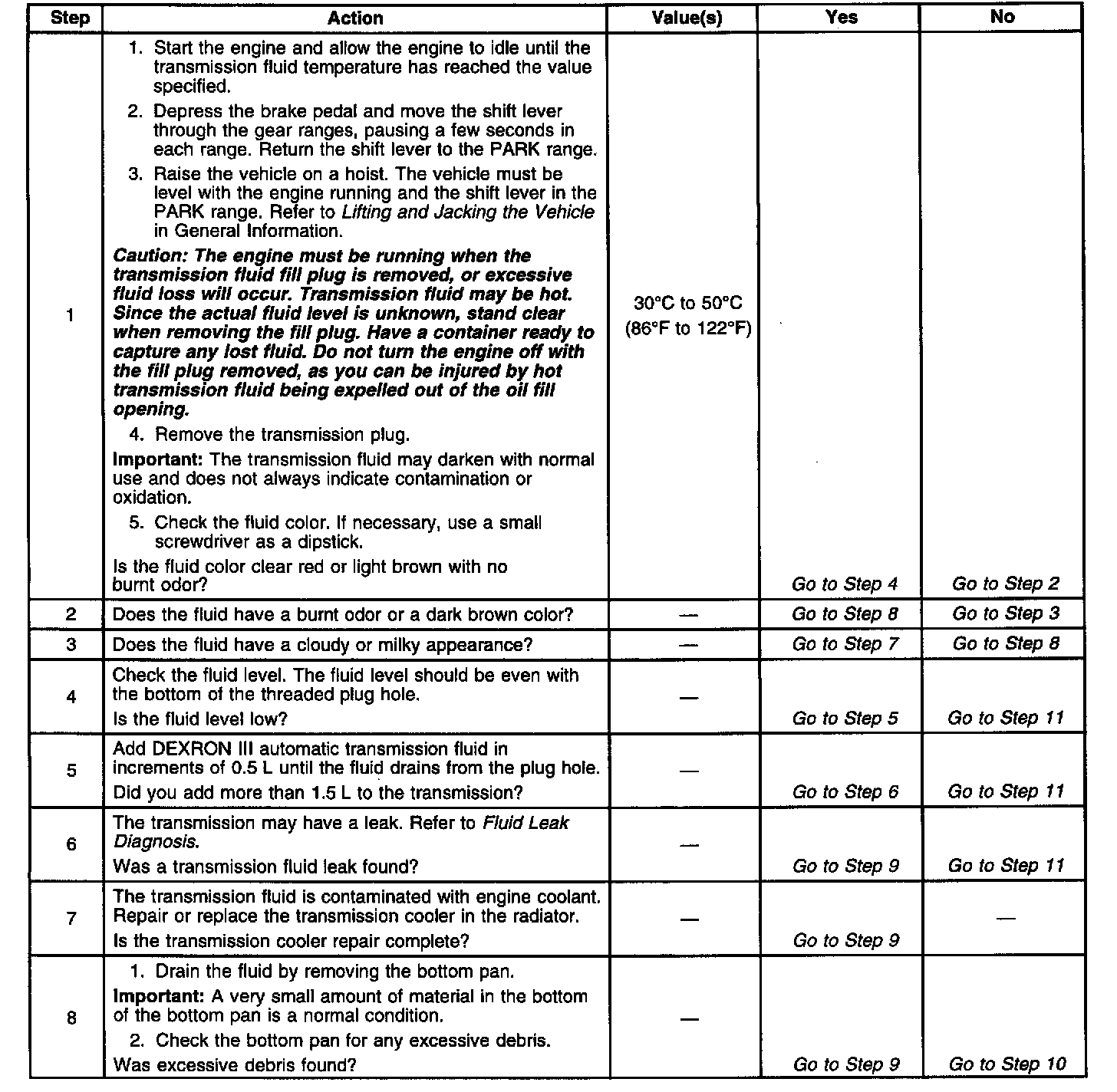 Transmission Fluid Level and Condition Check