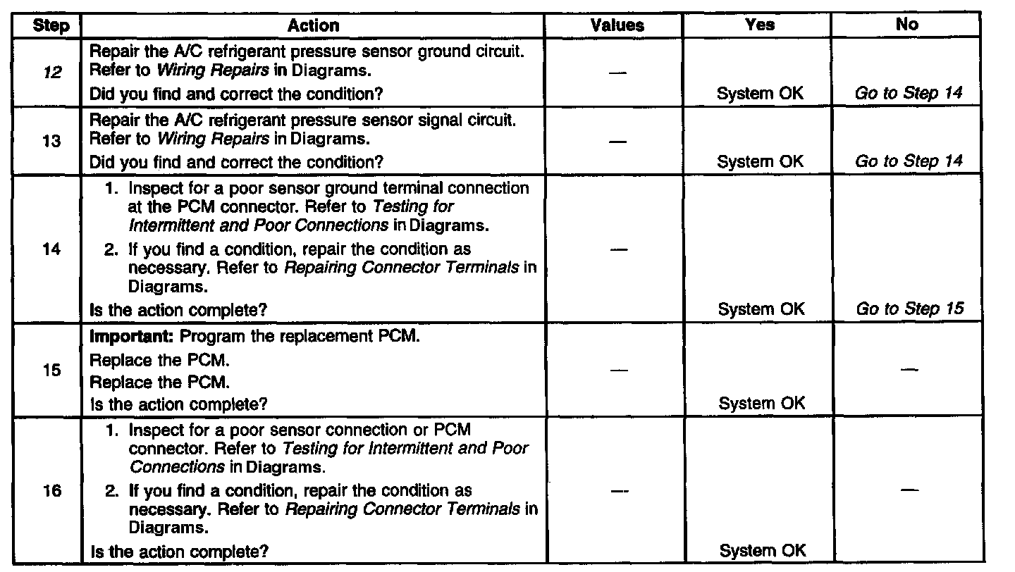 11. If you have thoroughly inspected the 5.0 volt reference circuit (for opens, shorts to ground, PCM connections etc.) and is OK, then replace the PCM.