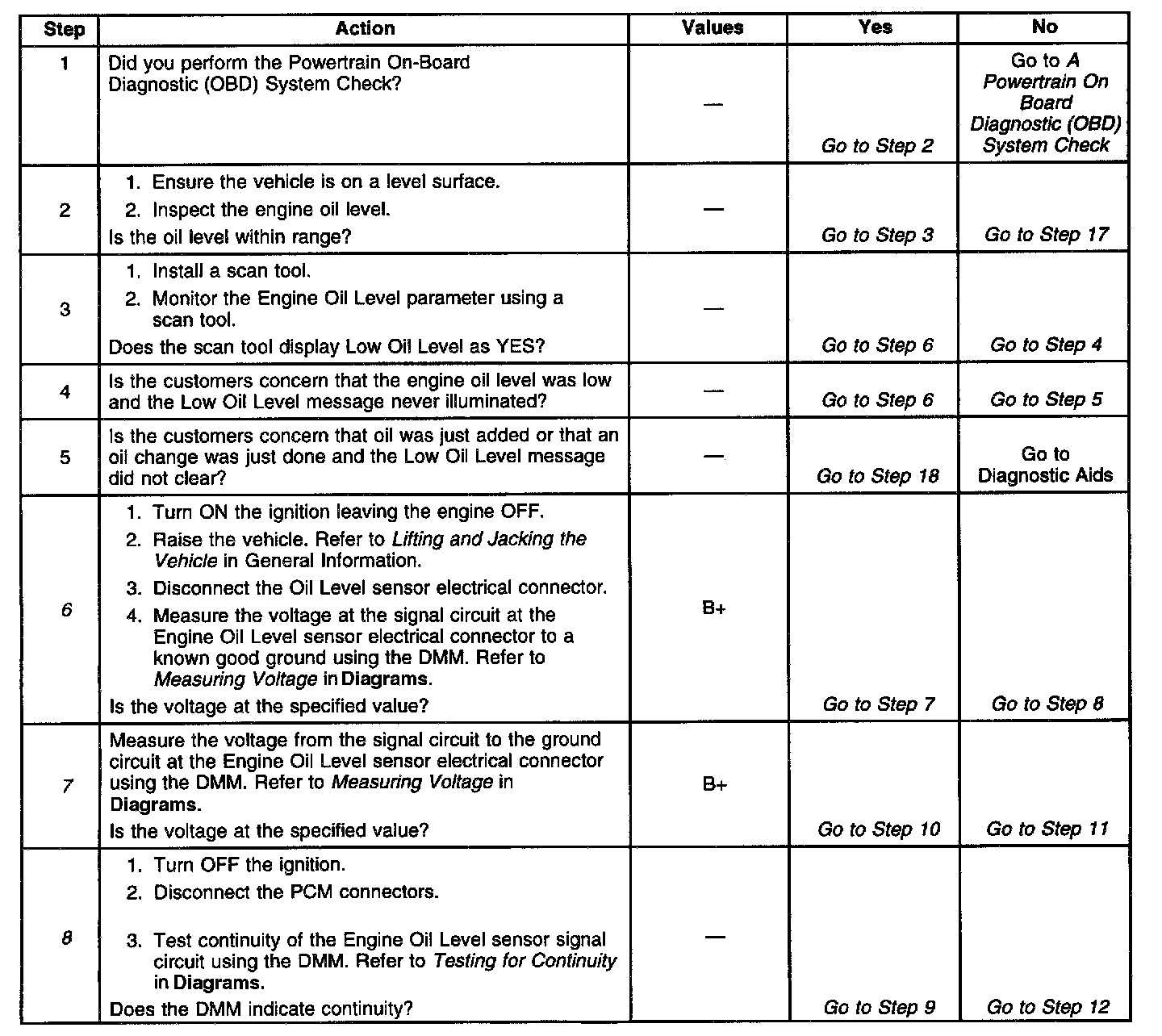 8. This steps tests for an open in the Oil Level sensor signal circuit between the PCM and the Oil Level sensor.