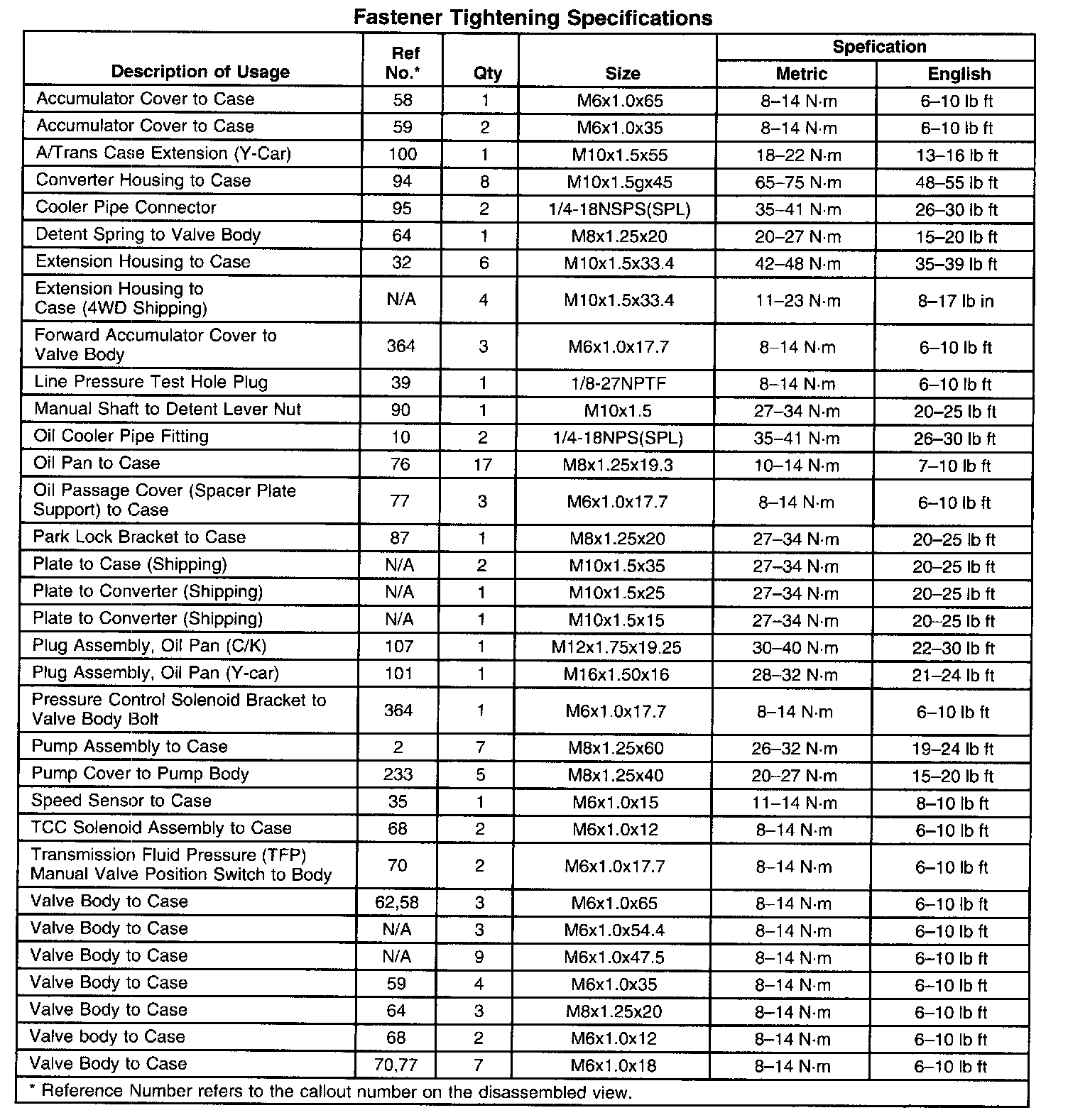 Fastener Tightening Specifications