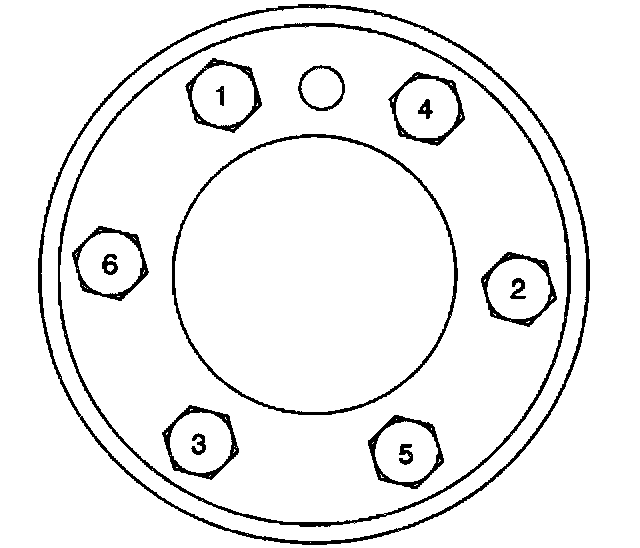3. Tighten the engine flywheel bolts final pass in sequence to 100 Nm (74 ft. lbs.).