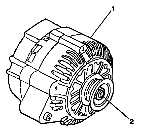 The generator's rotor shaft (2) is rotated by the engine drive belt. The rotor shaft rotates the generator's rotor. The generator produces the electrical current that charges the battery. The generator also provides energy to the vehicle's electrical systems when the engine is running.
