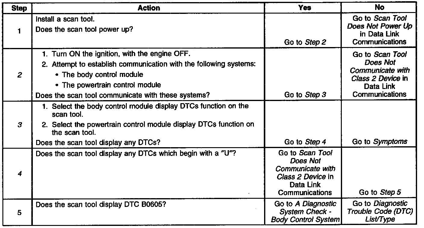 2. Lack of communication may be due to a partial malfunction of the class 2 serial data circuit or due to a total malfunction of the class 2 serial data circuit. The specified procedure will determine the particular condition.