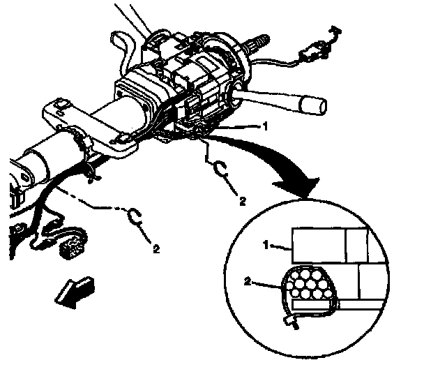 9. Remove the electric column lock (2) from the steering column tilt head assembly.