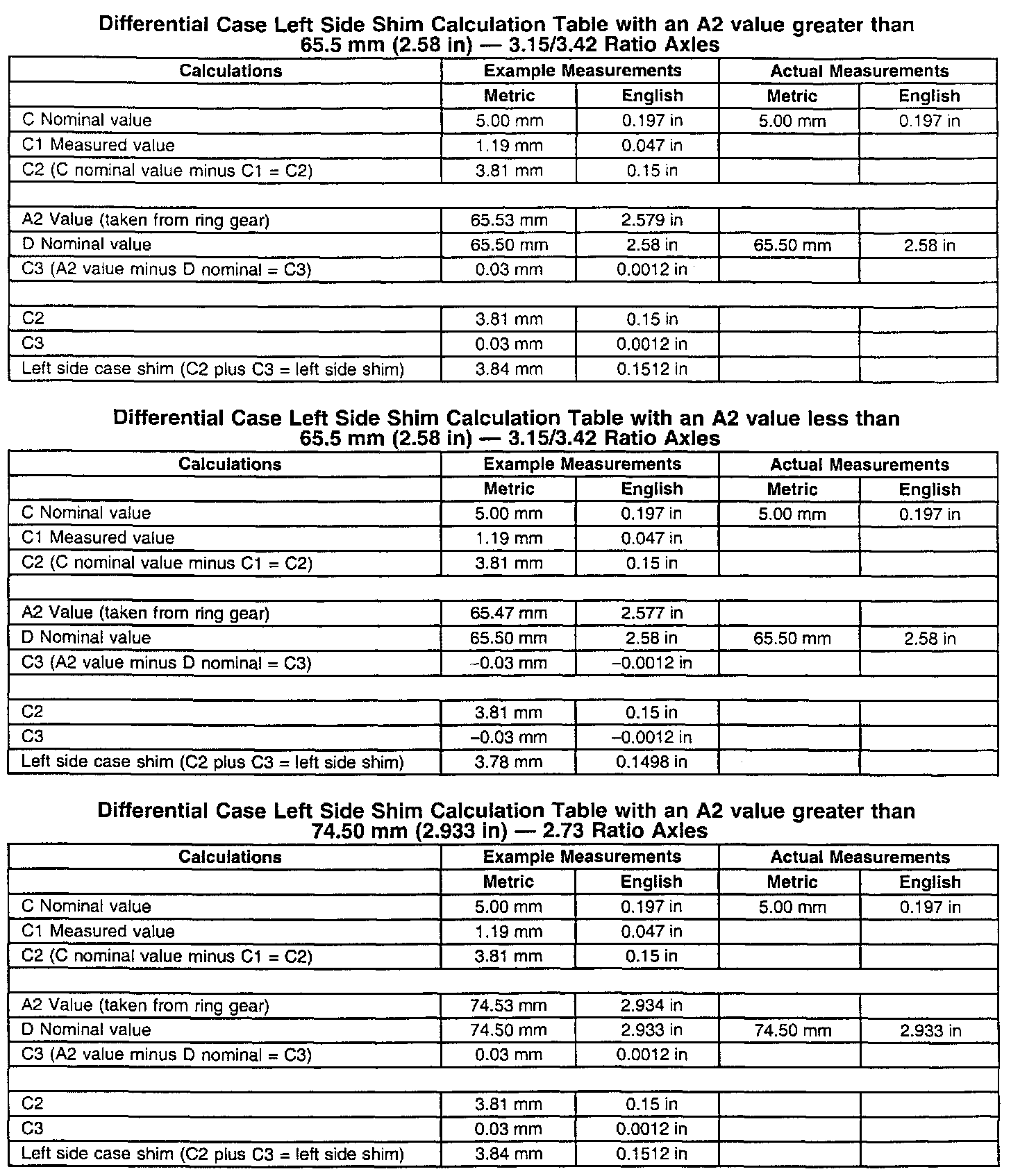 This bulletin is being issued to revise the Drive Pinion Shim Selection and Differential Side Bearings Assemble procedures. In addition, example shim calculation tables have been added within Spacer and Shim Specifications in the Rear Drive Axle section of the Service Manual. The revisions incorporate the use of J 42168 and the correct calculation procedures for proper shim(s) selection. Service Information 2000, available through the GM Access server or web information (version 05.08) or CD ROM (version 09.00) or later, will contain the updated information.