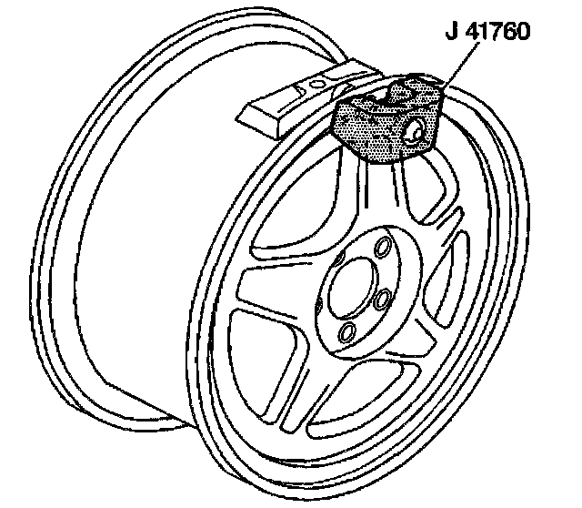 7. Install the J 41760 Tire Pressure Programming Tool over the left front valve stem.
