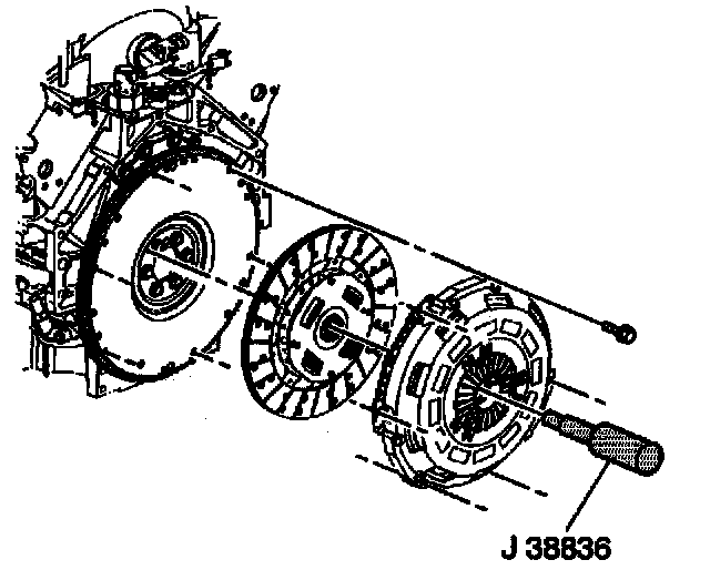 8. Using the J 38836, align the clutch driven plate to the pilot bearing.