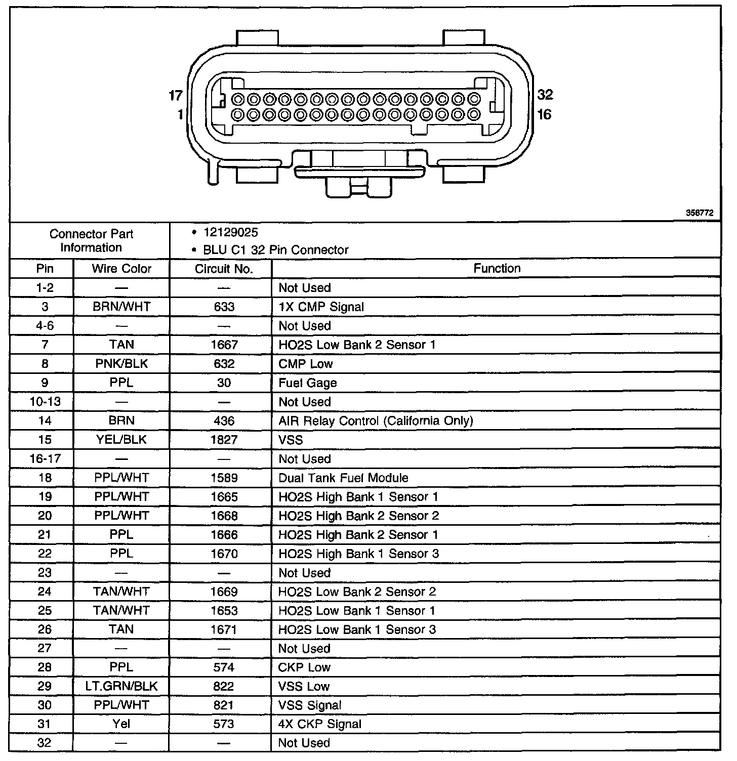 Blue C1 32 Pin Connector End View: