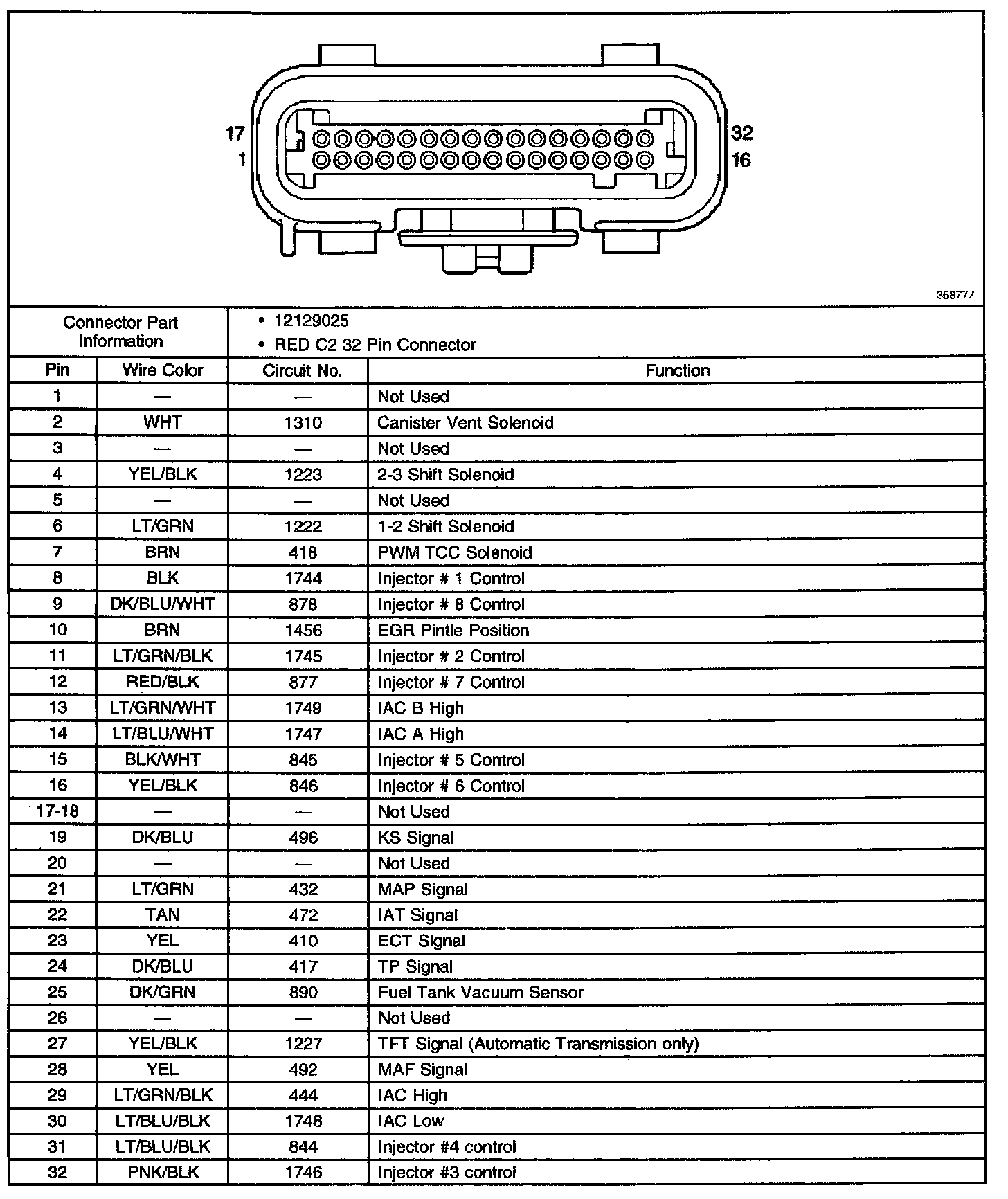 Red C2 32 Pin Connector End View: