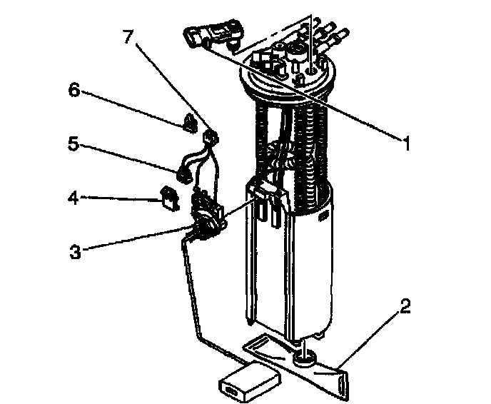 8. Disconnect the fuel level sensor electrical connector (7) from under the fuel sender cover.