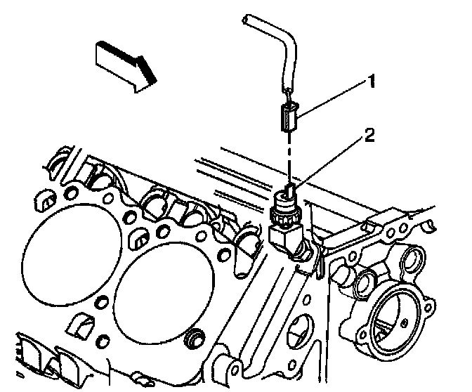 3. Remove the harness connector (1) from the oil pressure switch (2).