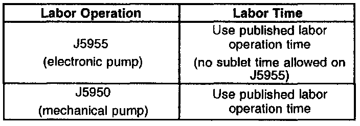 8. For an electronic pump only, the servicing dealer is authorized to submit a warranty claim for pump replacement labor time, plus 0.2 hour administration, and $45 handling charge in the net amount column of the warranty claim.