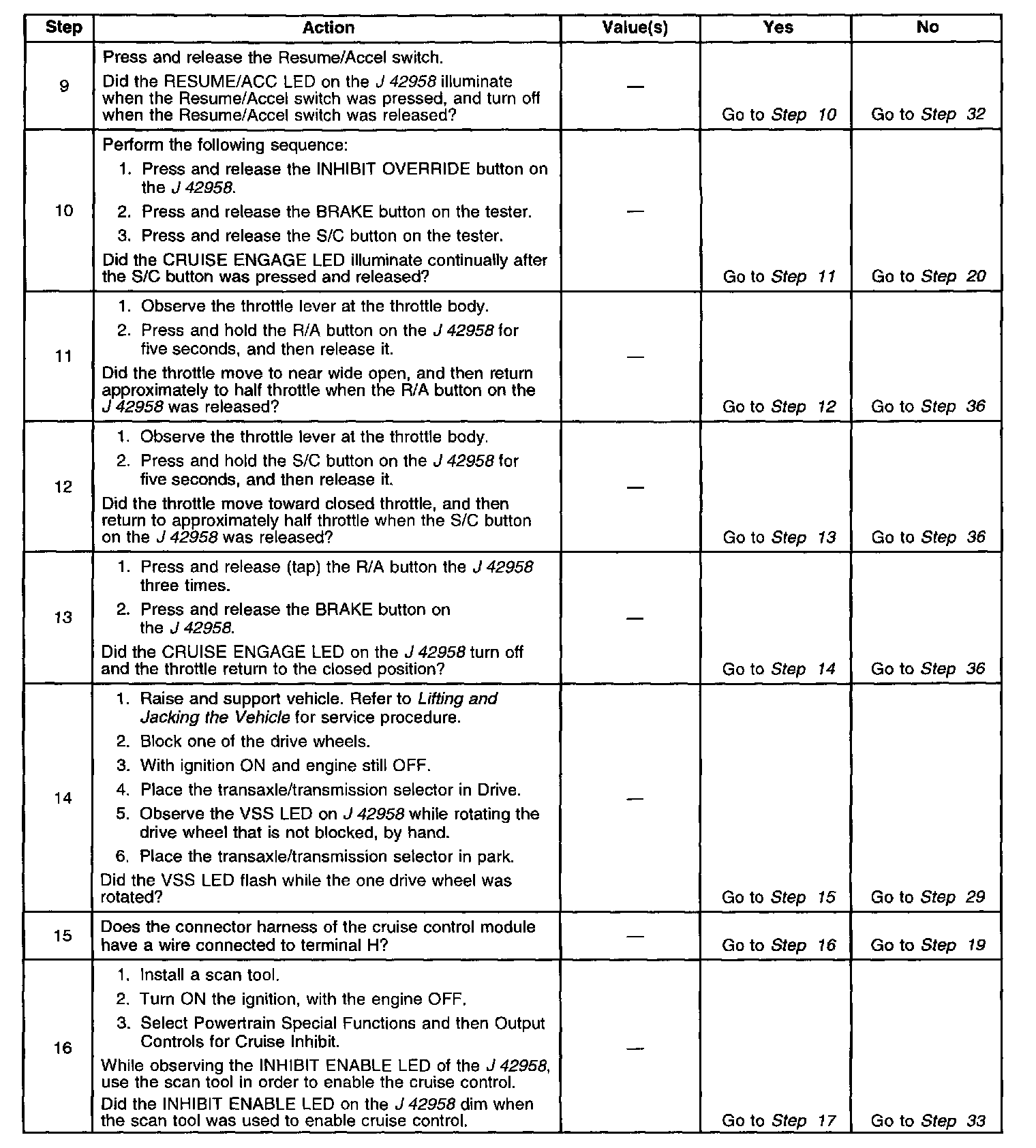 The PCM will inhibit (not allow) cruise control if one or more of the following has occurred: