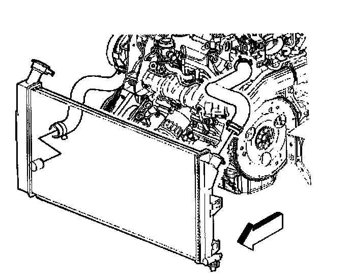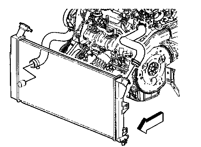 2. Connect the transaxle oil cooler lines to the radiator. Refer to Automatic Transmission Oil Cooler Pipes Replacement in Transmission and Drivetrain.