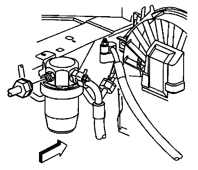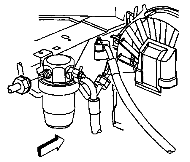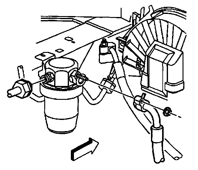 5. Remove the compressor hose nut from the accumulator and position the compressor hose aside.