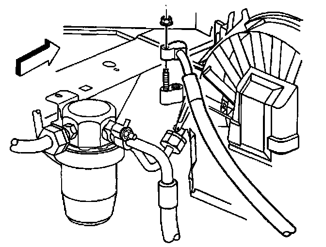 6. Remove the compressor hose nut from the accumulator and position the compressor hose aside.