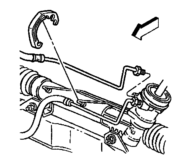 6. Remove the power steering pressure line (1) from the clamps on the power steering gear.
