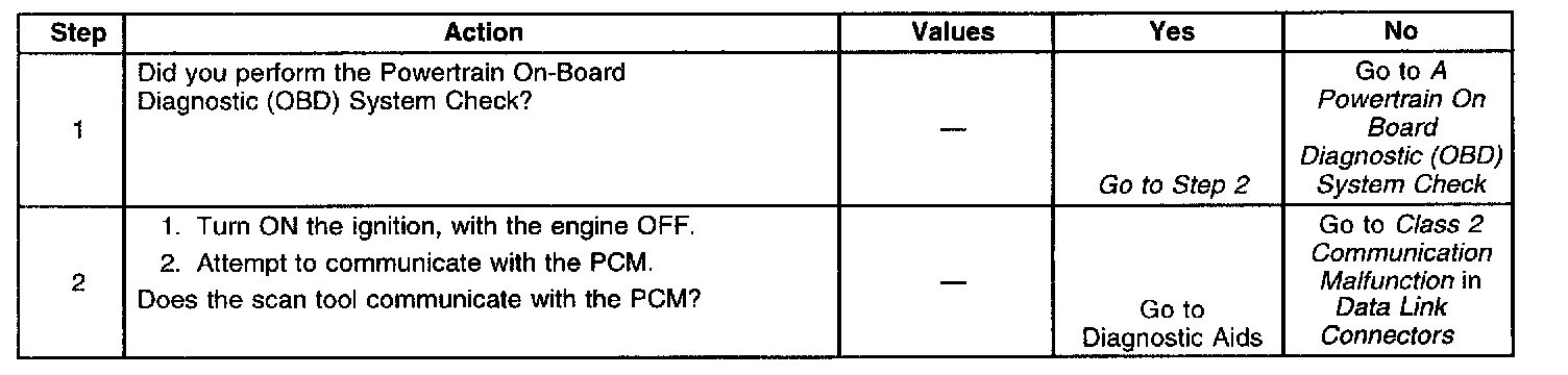 ^ When the Class II serial data circuit is shorted to ground, U1300 or U1305 will be set. Refer to DTC U1300 Class 2 Data Link Low or DTC U1305 Class 2 Data Link Low or High. Testing and Inspection Testing and Inspection