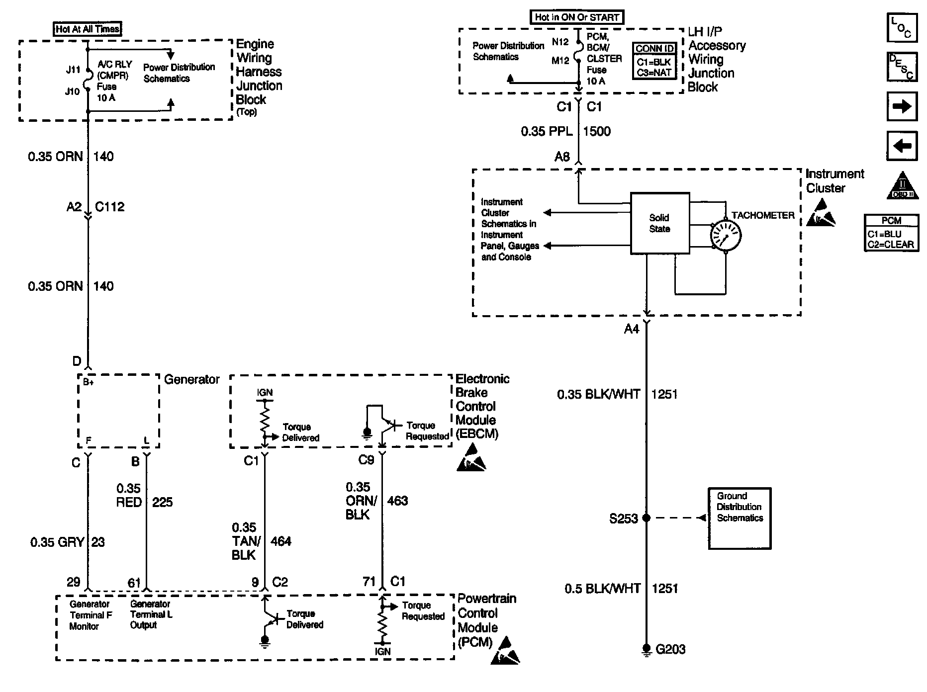 Engine Controls Schematics: EBCM, Generator, PCM, Tachometer: