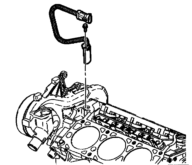 The camshaft position sensor is located on the timing cover behind the water pump near the camshaft sprocket. As the camshaft sprocket turns, a magnet in it activates the Hall-effect switch in the camshaft position sensor. When the Hall-effect switch is activated, it grounds the signal line to the PCM, pulling the camshaft position sensor signal circuit's applied voltage low. This is interpreted as a CAM signal.