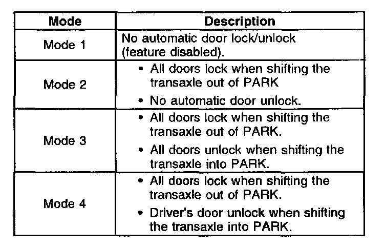 Feature Customization - Automatic Door Lock/Unlock Modes