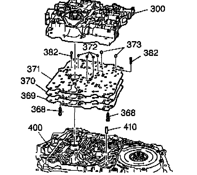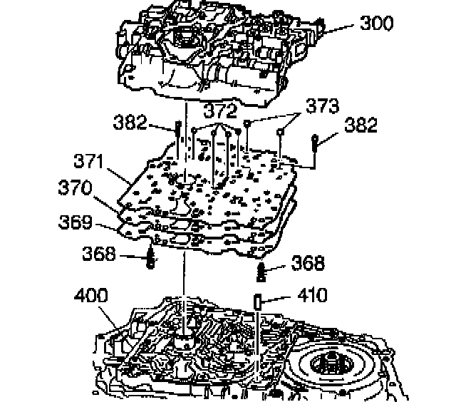 4. Remove the valve body (300) while keeping the spacer plate (370) with the transaxle.