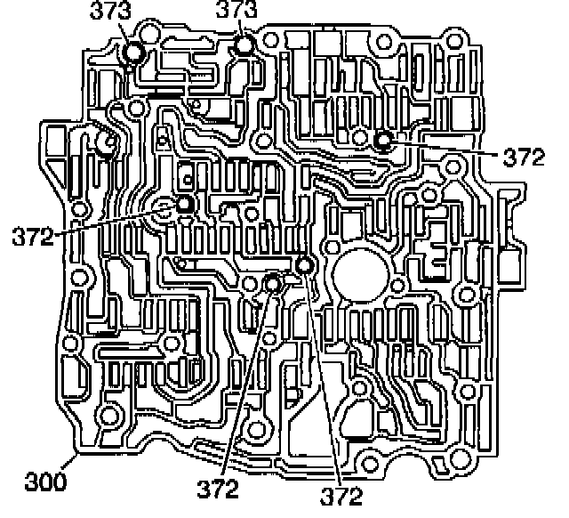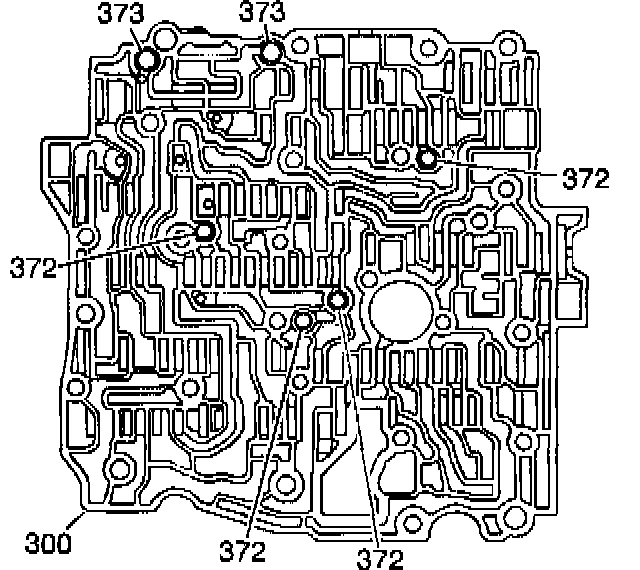 3. Install the ball check valves (372,373) into the valve body. Use the J 36850 to retain the ball check valves in their proper locations.