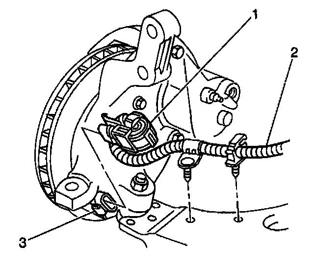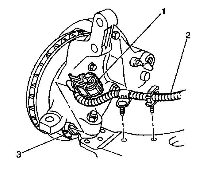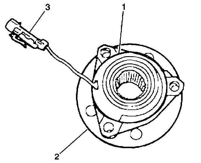 Removal ProcedureImportant: The front wheel speed sensors and rings are integral with the hub and bearing assemblies. If a speed sensor or a ring needs replacement, replace the entire hub and bearing assembly. Do not service the harness pigtail individually because the harness pigtail is part of the sensor. Refer to Front Wheel Drive Shaft Bearing Replacement.