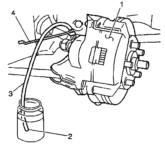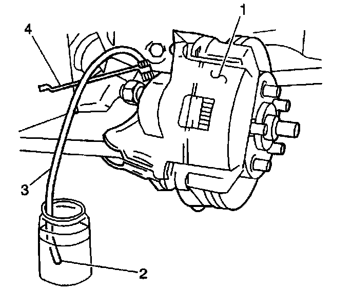 8. Attach the bleeder hose (3) to the bleeder valve at each wheel.