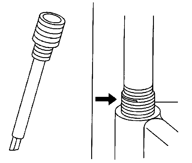 8. Screw the thread insert onto the mandrel of the thread insert installer. Engage the tang of the thread insert onto the end of the mandrel.