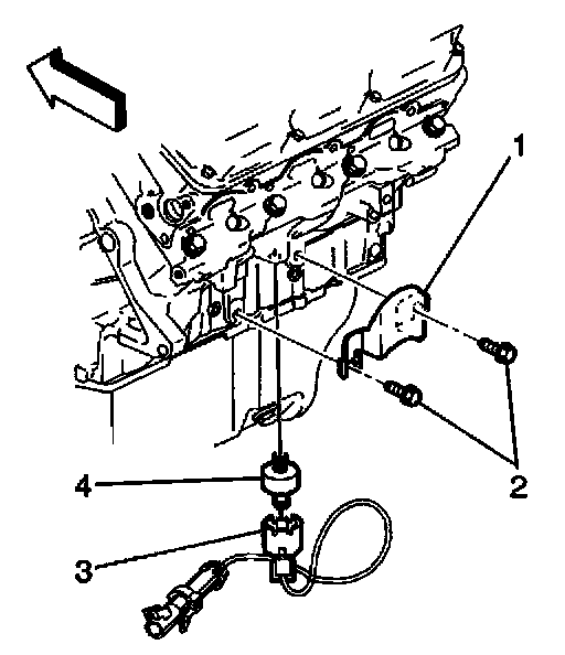 1. Install the knock sensor (2) into the engine block (1).