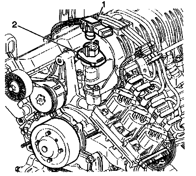 2. Position and install the MAP sensor (1) to the PCV valve cover (2). Ensure that the locking tabs engage to hold the MAP sensor to the PCV valve cover.
